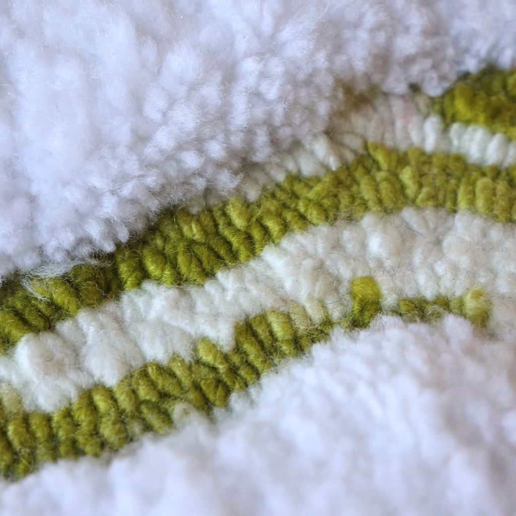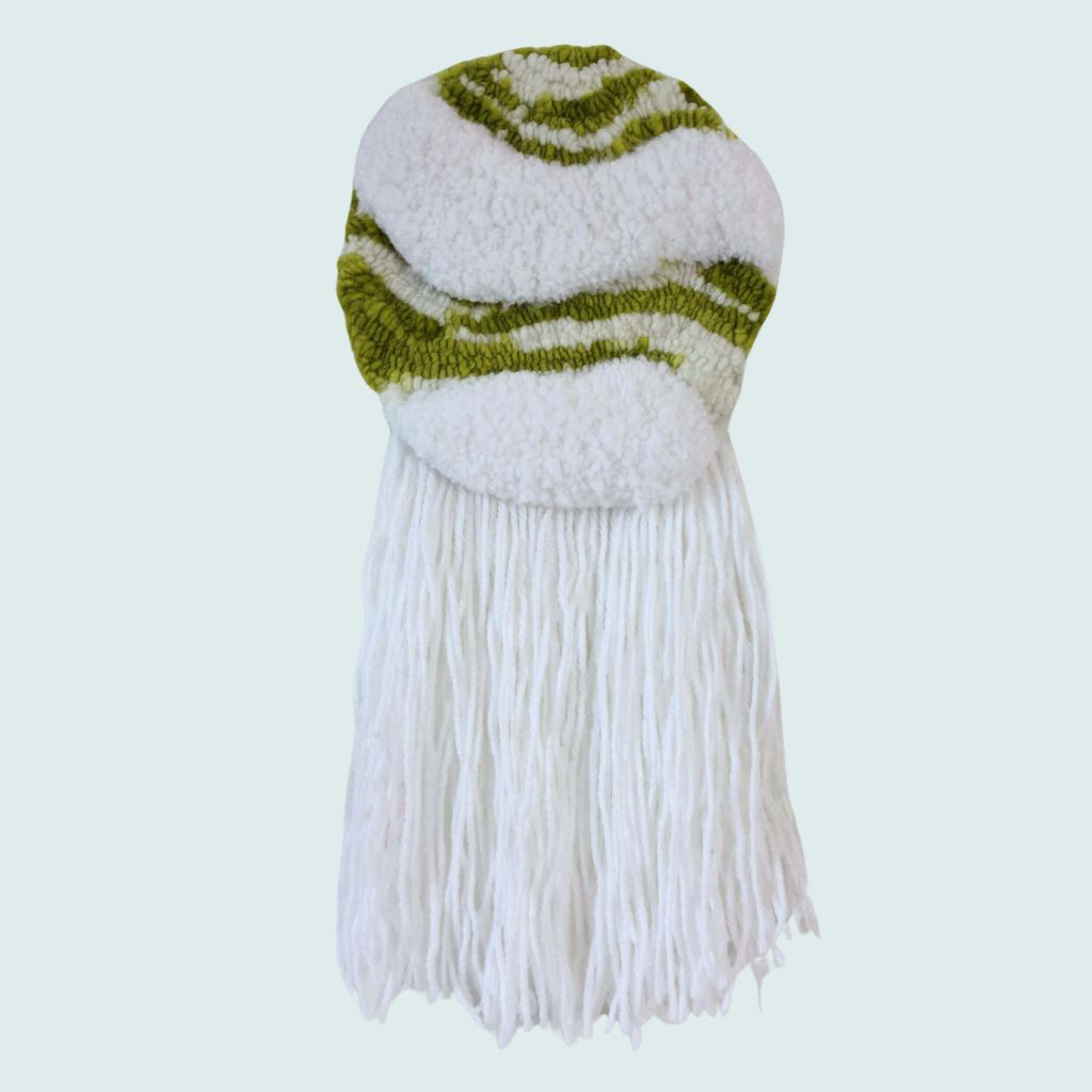 Laine acrylique et arrière en feutrine avec système d’attache.
