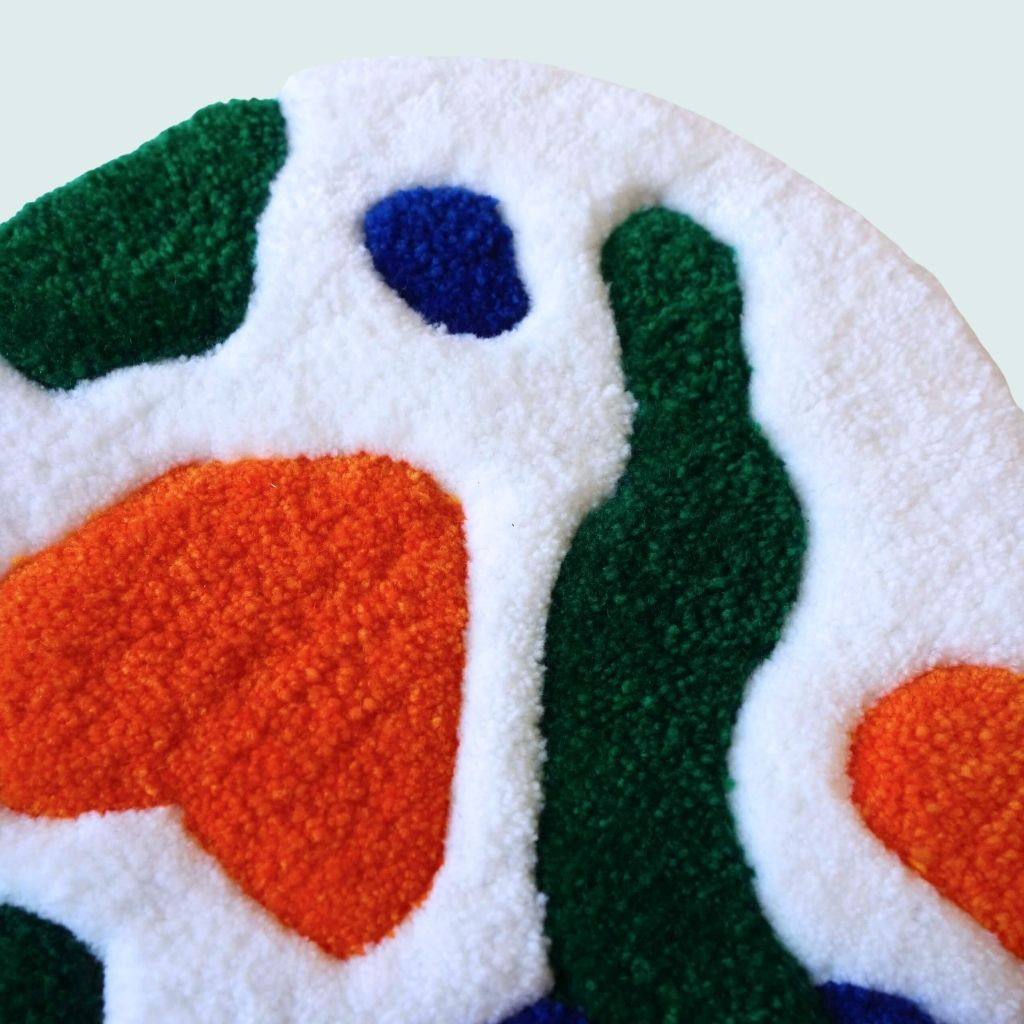 « Galatée » Décoration murale tuftée. Laine acrylique et arrière en feutrine avec système d’attache.